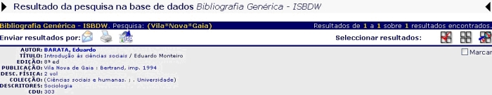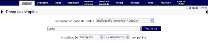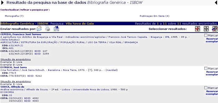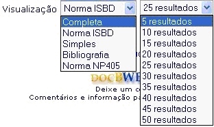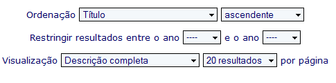 Os resultados podem ser ordenados segundo vários critérios, Título, Autor, etc, assim como delimitados entre anos de publicação.